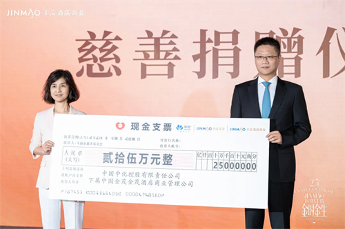 长期以来,中国中化和中国金茂积极参与慈善事业,促进社会和谐与发展,用实际行动推进社会公益事业,切实履行企业的社会责任。值此新中国成立75周年和金茂大厦全面开业25周年之际,金茂酒店商业在中国中化和中国金茂引领下,进一步践行央企责任,传递金茂温度,向上海市慈善基金会捐赠人民币25万元,本次慈善活动将通过上海慈善基金会定向为内蒙古阿鲁科尔沁旗地区天山一中和天山六中进行捐赠,用于支持和激励学校青年教师教学技能提升和个人成长成才,为学校建设10间学科教研室、购置配套设施,提升教育教学质量。未来,金茂酒店商业将继续履行社会责任,持续为社会贡献力量。