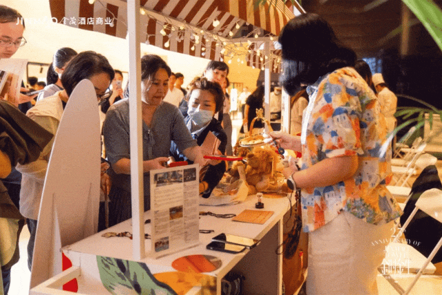 作为活动的重要组成部分,MORE市集活动也在同步进行,金茂酒店商业旗下来自北京、上海、三亚、丽江、南京、长沙、苏州、天津、青岛、宁波等地的酒店及购物中心,带来了不同地域的体验外,也将购物与文化体验完美结合。同时,金茂大厦一楼大厅布置了多个市集打卡点,现场爵士乐演奏营造了优雅的氛围,时光展览则带领大家重温大厦的发展历程。