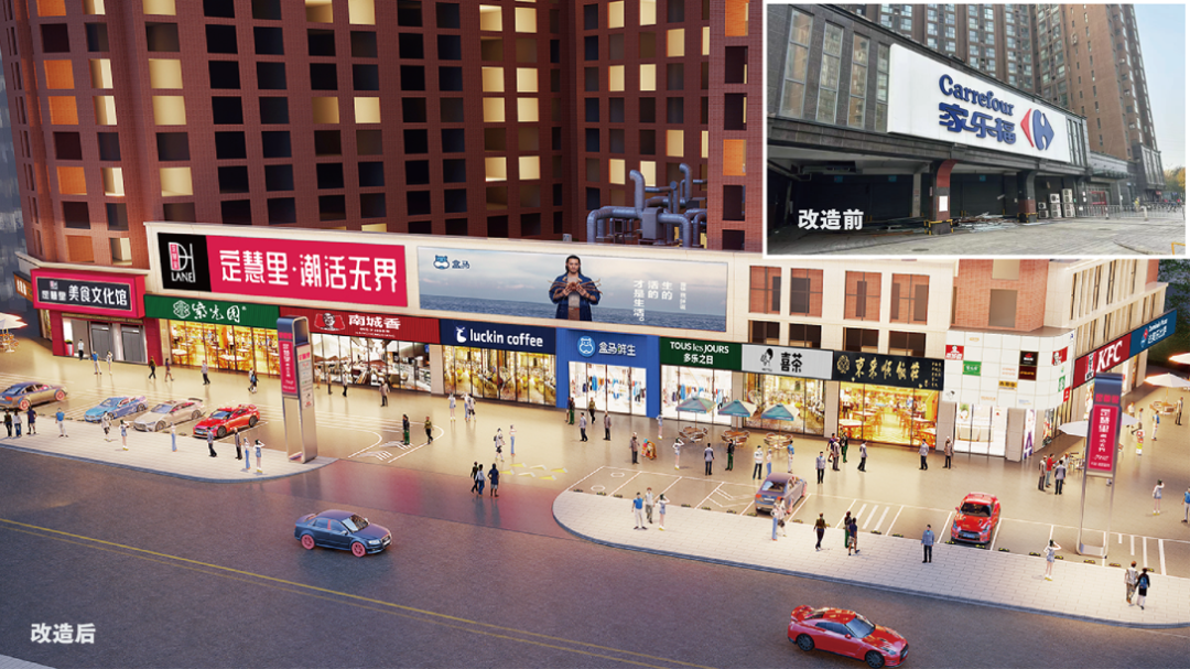 对此,天慧商业斥资12000万元对这所空置五年的街区商业进行大刀阔斧改造,并对下沉广场、外立面、硬件、内装以及动线等进行全方位重大调整,还精准拿捏新时代下巨大的体验式商业需求设计出开放式双首层,在增加品牌门店展示面的同时,也用更具通透性的场景营造出舒适感和松弛度,现已成为城市风情商业街升级的示范模版,为旧宫增添光彩。