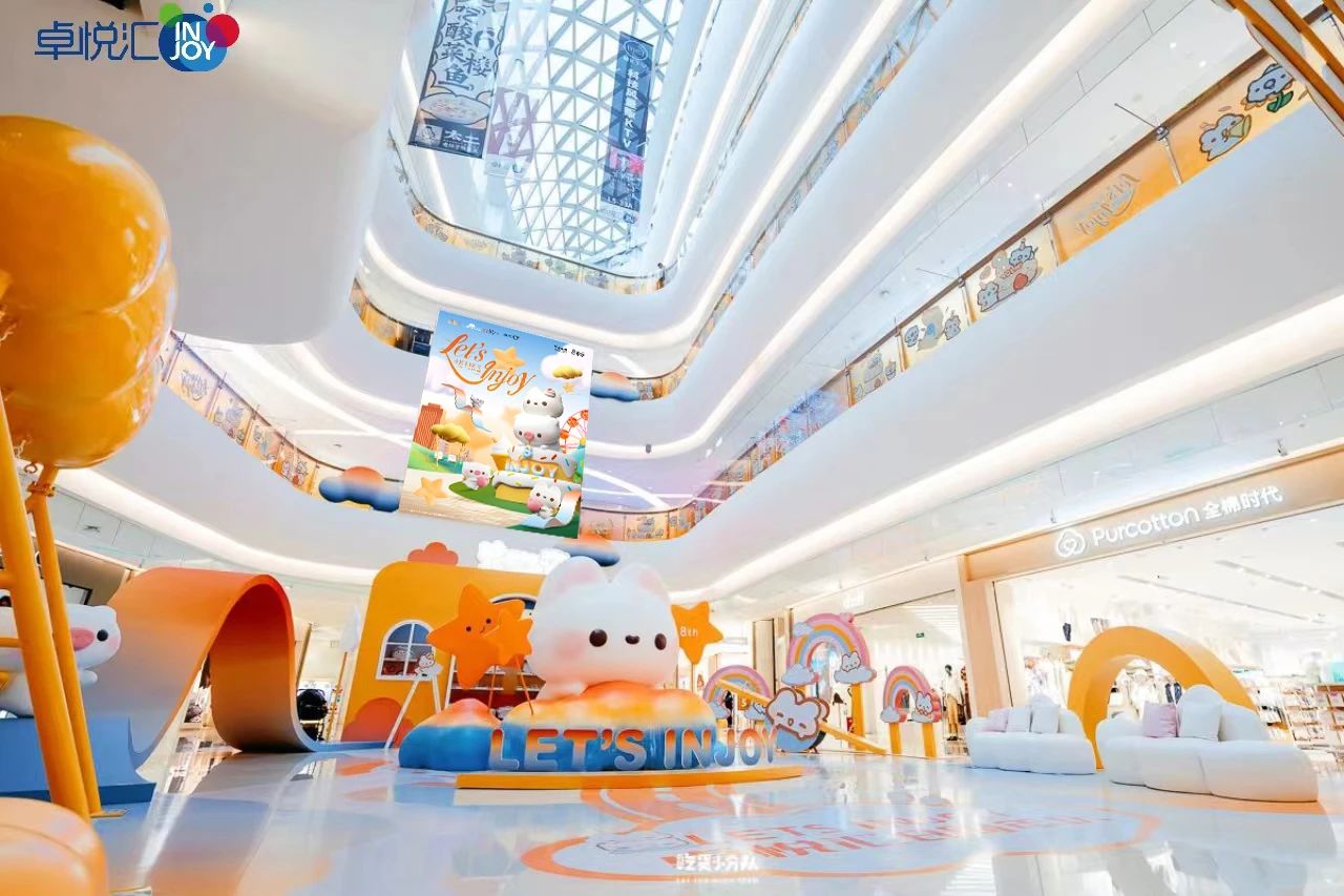 人山人海,大排长龙,凡是有热门IP出没的商场,似乎总能攻占年轻人,成为“现象级”城市爆款。继去年周年庆爆火的奶茶鼠全国首展之后,今年,卓悦汇购物中心以“Let's Injoy”为主题,再度携手热门IP,推出可爱联盟全国首展。“可爱联盟”成员小猪嘟嘟和小兔可可空降,在商场设立了四大美陈打卡点,让软萌可爱的治愈系IP从内到外全方位展现,趣味与治愈融为一体。