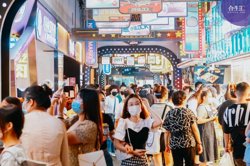 北京朝阳合生汇的21区 block 创意街区占地2万㎡,贯通了B1、B2两层空间,日料、韩餐、西餐、本地美食等200余家餐饮入驻其中。借助21区BLOCK独特的餐饮体验,合生汇打出“一站式吃遍全球”的美食SLOGAN,让顾客可以品尝到北京乃至全球的美食。
