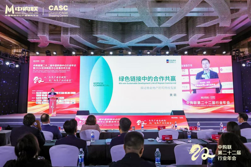 合生商业立足于集团ESG工作框架,结合商业地产运营管理工作实际,探索更多可持续发展目标实现的可能。在“中购联第22届购物中心行业年会暨2024亚洲购物中心发展合作大会”中,黄萌就《绿色链接中的合作共赢》展开主题演讲。