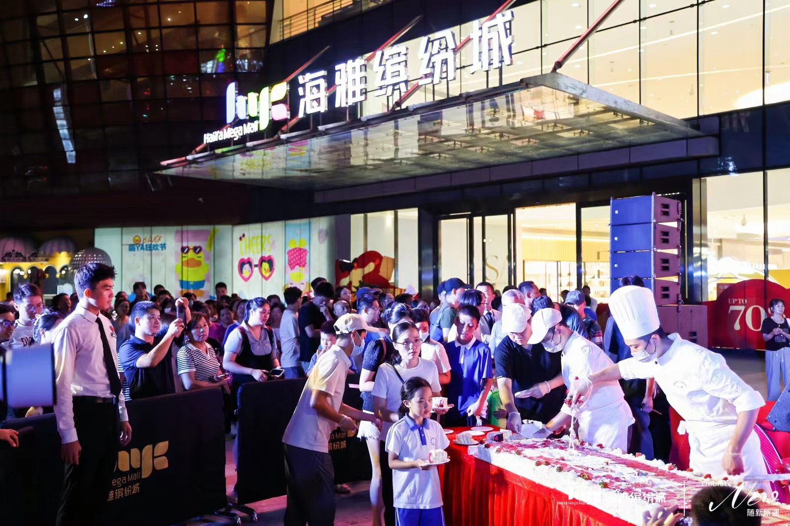 9月14日,庆典当天,整个购物中心化身为欢乐的海洋,巨型生日蛋糕、精彩纷呈的嘉年华表演,每一个细节都透露着对过去的感恩与对未来的憧憬。在众人的期待中,精心制作的巨型生日蛋糕缓缓亮相,其壮观的尺寸与精美的装饰立刻吸引了在场所有人的目光。蛋糕不仅象征着海雅缤纷城过去一年的辉煌成就,更承载着对未来无限美好的祝愿。伴随着欢快的音乐,免费赠送给在场的每一位顾客,分享这份甜蜜。