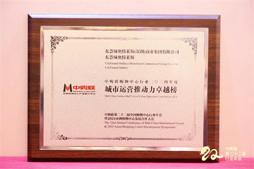 东荟城奥特莱斯荣登中购联购物中心行业2024年度城市运营推动力卓越榜