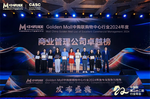 此次大会,发布的“Golden Mall中购联购物中心行业2024年度专业竞争力榜单”中,集团总裁 叶智辉先生 荣登中购联购物中心行业2024年度专业创新人物卓越榜,我司亦是荣登中购联购物中心行业2024年度城市运营推动力卓越榜。未来,我司将与中购联及全体商业同仁携手共进,共同应对中国商业地产行业所面临的危机与机遇,以不变的初心砥砺前行,推动行业持续变革,行稳致远!