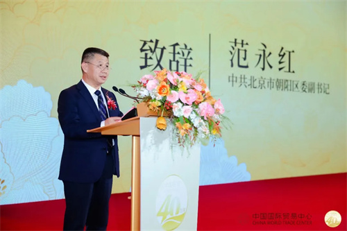 会上,中华人民共和国商务部副部长、中国国际贸易中心有限公司董事长盛秋平,中国国际贸易中心有限公司副董事长郭惠光,中共朝阳区委副书记范永红先后发表致辞,从不同角度回顾国贸中心取得的荣耀成就,共同展望未来发展新篇章。