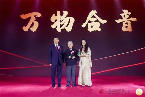 回望奋斗路,国贸中心的辉煌成就离不开富有远见的奠基人和创业者。其中101岁高寿的马来西亚华人郭鹤年先生是国贸中心的奠基者之一,他虽然身在香港,但是心却在国贸,他以最传统的信函方式表达了对国贸中心的深厚感情。魏玉明先生是国贸中心第二任董事长,2024年正是魏老百岁华诞,他亲临大会,并寄语国贸:继承艰苦奋斗的精神,开创宏伟事业的未来。大会现场,盛秋平董事长代表国贸中心向郭鹤年先生和魏玉明先生两位德高望重的百岁老人致敬献礼。礼物是名为“万物合音”的琉璃作品,既代表两位老人的高雅品格,又象征着合资双方精诚合作成就了 “锐意进取,铸就非凡”的国贸精神;葫芦的造型设计更是对两位老人福禄双全、健康长寿的诚挚祝福。