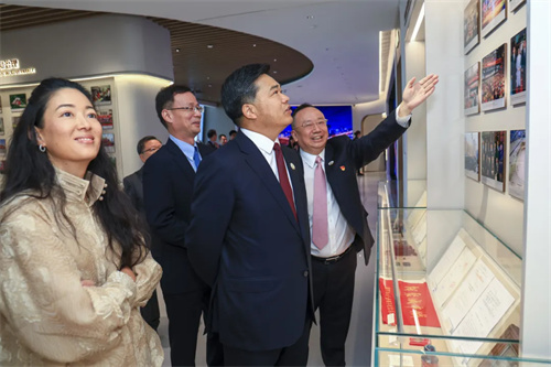 当日,中国国际贸易中心企业展示厅在国贸大厦A座81层正式启幕。盛秋平、郭惠光、黄国祥、吴相仁为展厅揭幕。展厅分为历史篇、发展篇和创新篇三大篇章,巧妙融合了先进的数字多媒体技术、众多首次公开的珍贵实物陈列和丰富的历史照片。每一件展品、每一幅影像都生动再现了国贸中心40年来历久弥新的记忆,鲜活展示了“锐意进取,铸就非凡”的卓越征程。