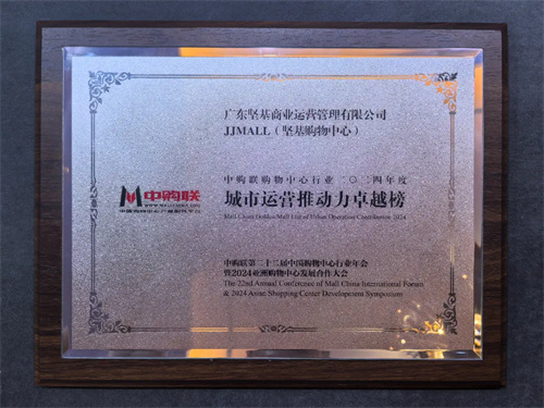 在本次晚会上,JJMALL(坚基购物中心)凭借精准定位、突破性构想及独特的社会推动价值,荣登『Golden Mall中购联购物中心行业2024年度城市运营推动力卓越榜』。