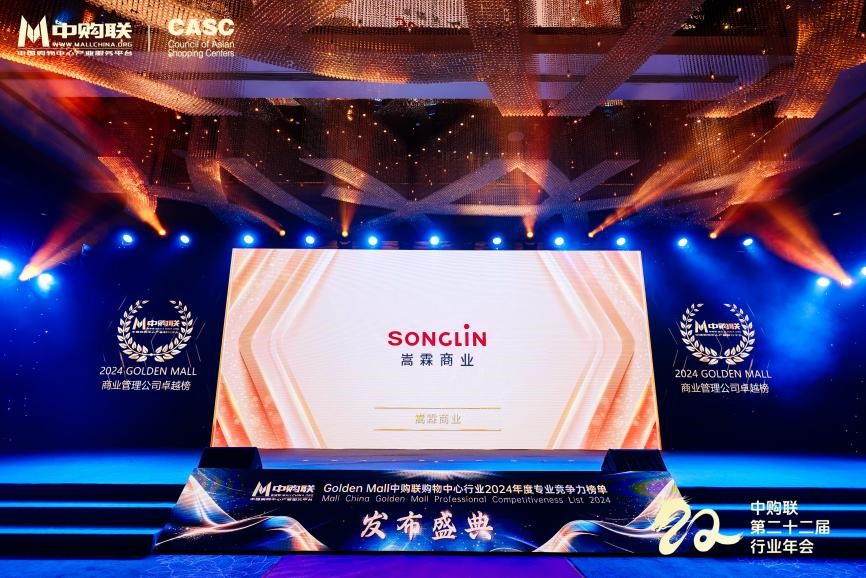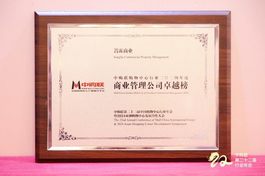 此次大会,发布的“Golden Mall中购联购物中心行业2024年度专业竞争力榜单”中,嵩霖商业荣登中购联购物中心行业2024年度商业管理公司卓越榜。未来,中购联及全体商业同仁携手共进,共同应对中国商业地产行业所面临的危机与机遇,以不变的初心砥砺前行,推动行业持续变革,行稳致远!