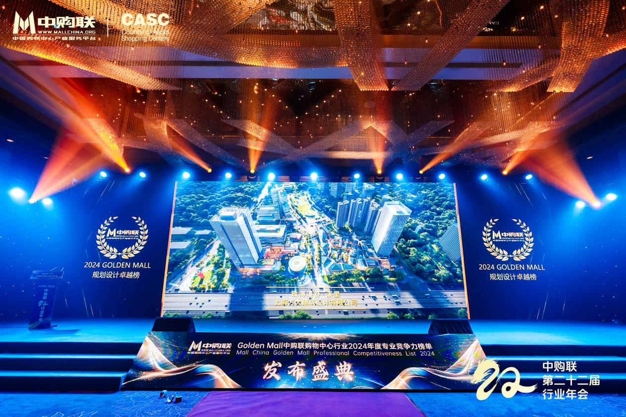 此次大会,发布的“Golden Mall中购联购物中心行业2024年度专业竞争力榜单”中,珠海漫舒溪里荣登中购联购物中心行业2024年度规划设计卓越榜。未来,中购联及全体商业同仁携手共进,共同应对中国商业地产行业所面临的危机与机遇,以不变的初心砥砺前行,推动行业持续变革,行稳致远!