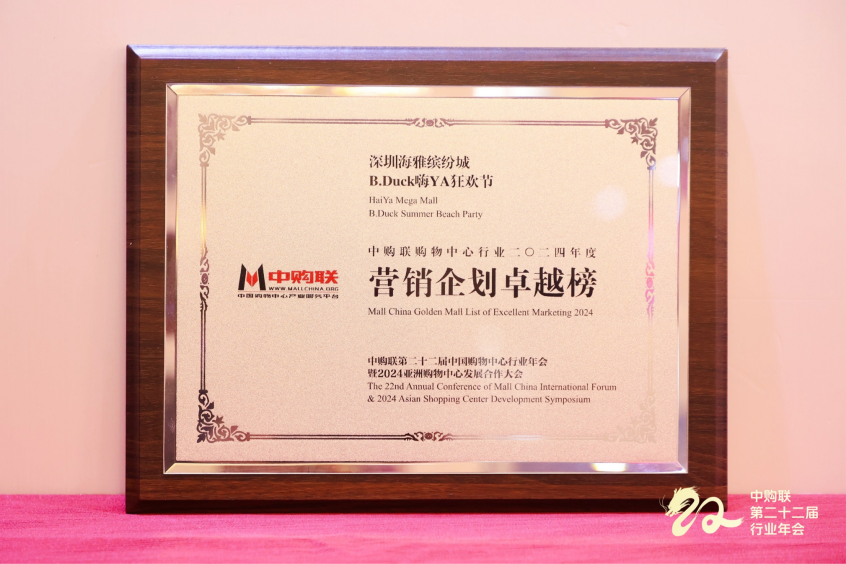 此次大会,发布的“Golden Mall中购联购物中心行业2024年度专业竞争力榜单”中,深圳海雅缤纷城荣登中购联购物中心行业2024年度营销企划卓越榜。未来,中购联及全体商业同仁携手共进,共同应对中国商业地产行业所面临的危机与机遇,以不变的初心砥砺前行,推动行业持续变革,行稳致远!