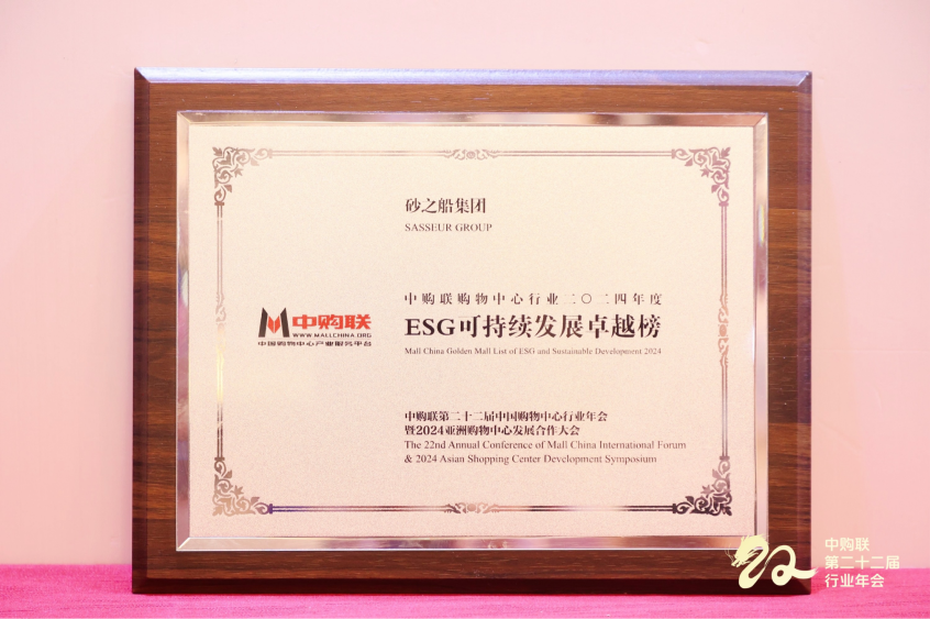 砂之船集团荣登中购联购物中心行业2024年度ESG可持续发展卓越榜