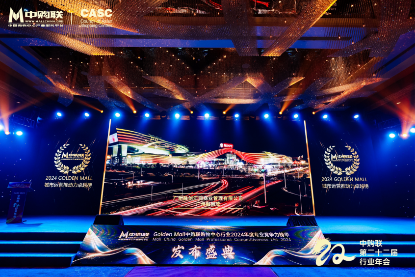 此次大会,发布的“Golden Mall中购联购物中心行业2024年度专业竞争力榜单”中,广州融创茂荣登中购联购物中心行业2024年度城市运营推动力卓越榜。未来,中购联及全体商业同仁携手共进,共同应对中国商业地产行业所面临的危机与机遇,以不变的初心砥砺前行,推动行业持续变革,行稳致远!