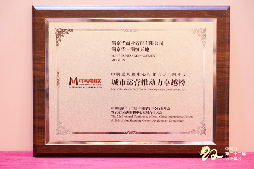 满京华满纷天地荣登中购联购物中心行业2024年度城市运营推动力卓越榜