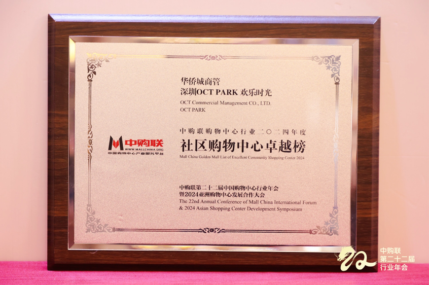 华侨城商管 深圳OCT PARK 欢乐时光荣登中购联购物中心行业2024年度社区购物中心卓越榜