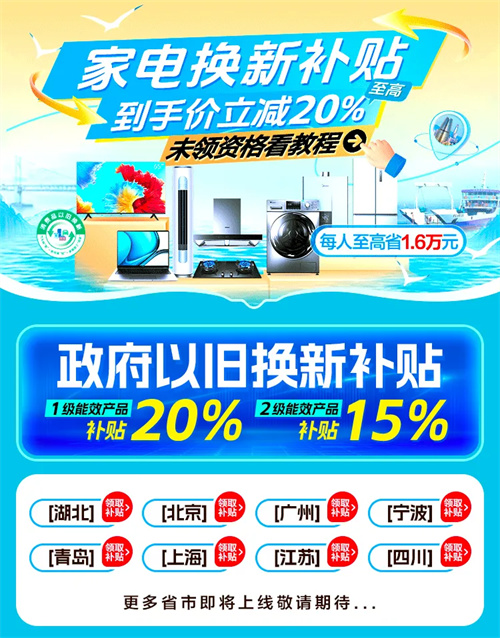 双11期间,苏宁易购全面承接国家以旧换新政策,加力打造线上线下全场景换新渠道。目前,北京、湖北、广东、宁波、上海、江苏、青岛、四川等地线上以旧换新专场已登陆苏宁易购APP,天津、安徽等地线上换新专区近日将密集上新。相关负责人表示,苏宁作为政府指定补贴发放平台,在政府对绿色节能产品15%-20%的优惠基础上,联合品牌商家、金融机构,为用户提供产品更多、优惠更大、服务更好的换新体验。面向苏宁易购Super会员等核心用户,苏宁易购还将发放满1500减120、满3000减240、满5000减400、满8000减600等“会员大额券”,可叠加国家以旧换新补贴、满300减50等优惠。