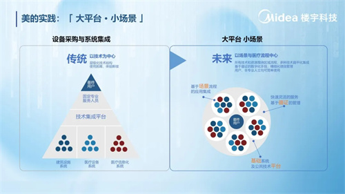 智慧建筑打破常规,以场景与业务流程为中心,通过数字化平台实现技术和资源的扁平化集成。当场景发生变化时,可以快速解耦各个子系统,再重新组合形成新的应用,灵活地服务于最终用户。通过“大平台”与“小场景”的结合,实现智慧建筑的快速迭代,为最终用户提供快速灵活服务。