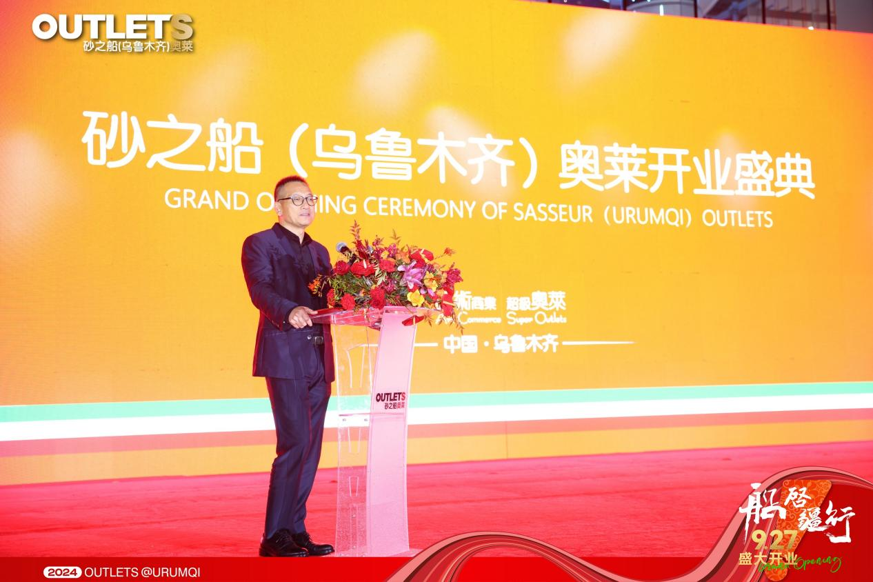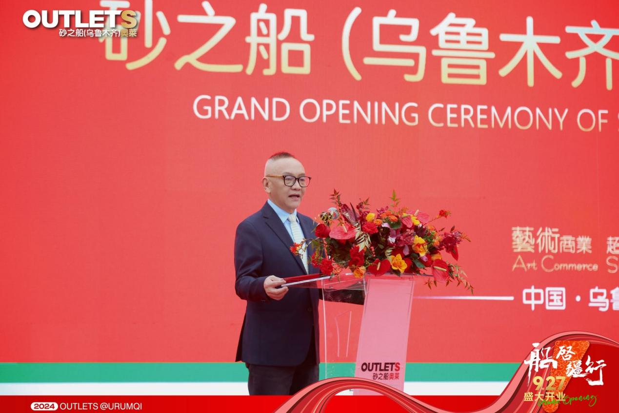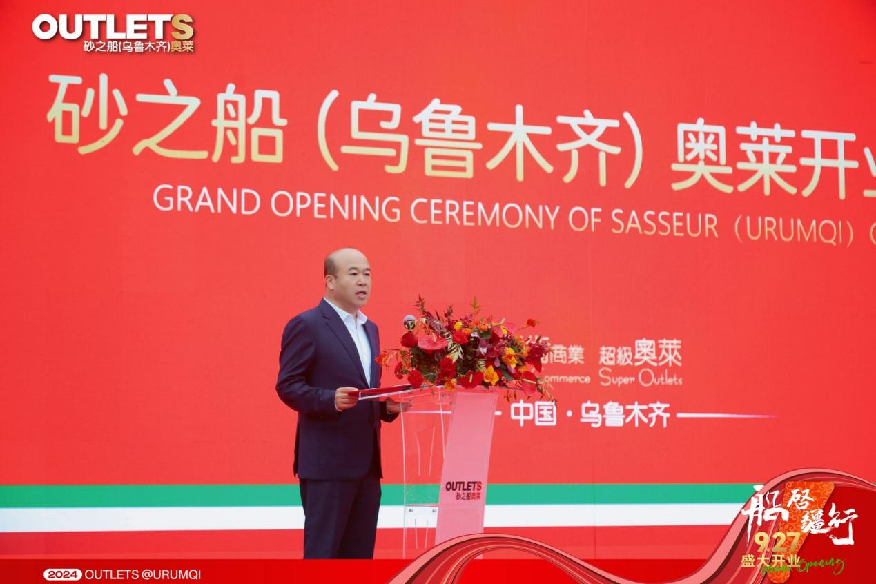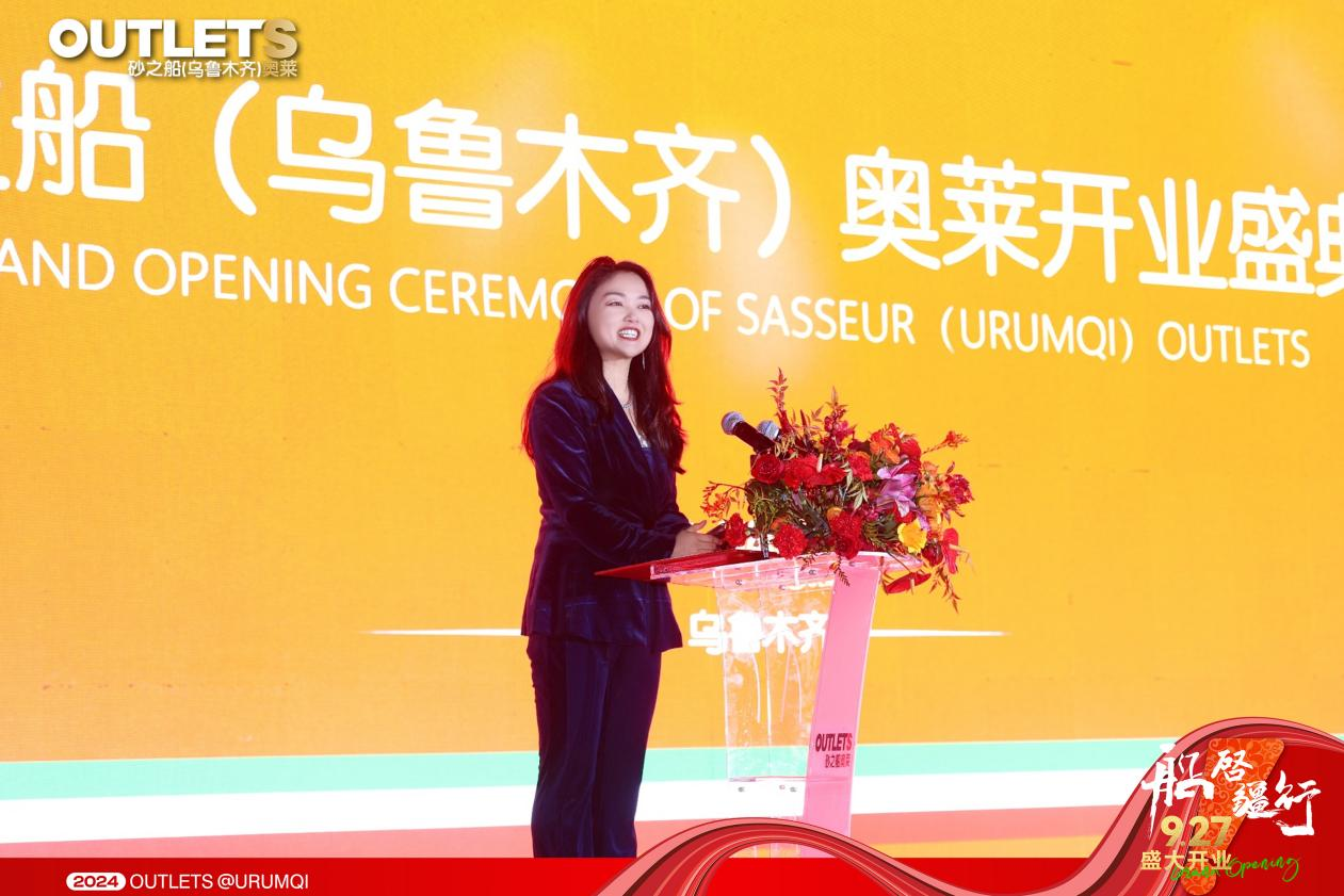 砂之船集团总裁许军先生致欢迎辞,欢迎各级领导以及品牌方、媒体、合作伙伴等各界嘉宾亲临现场;砂之船乌鲁木齐分公司副总经理曾小丽女士向社会各界的关心支持以及团队的辛勤付出致以诚挚的感谢,并带领砂之船(乌鲁木齐)奥莱管理团队登台亮相。