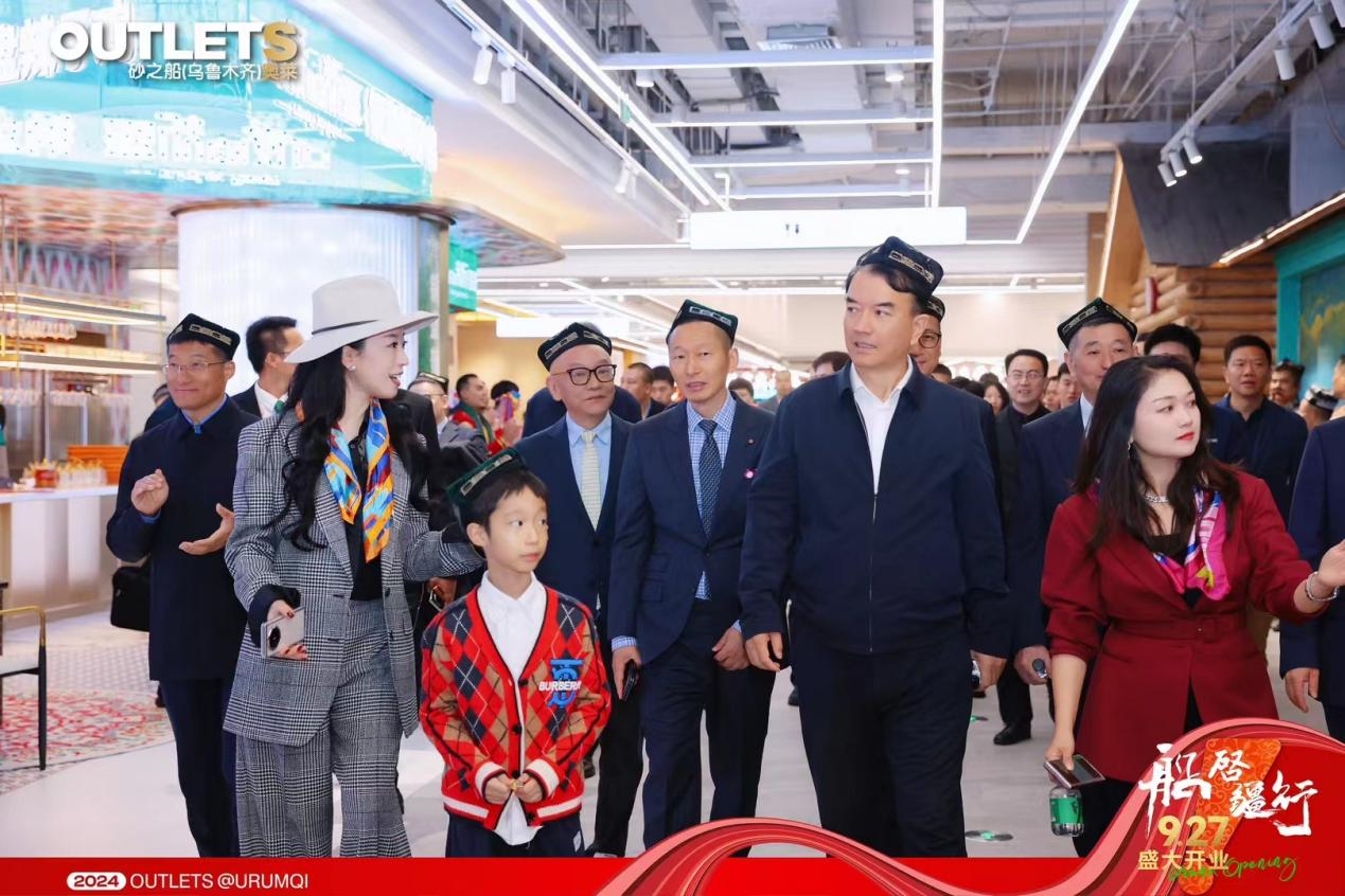 在启动仪式圆满结束后,乌鲁木齐市委副书记、市长牙合甫·排都拉,乌鲁木齐市副市长侯咏,乌鲁木齐经开技术开发区(头屯河区)区委副书记、管委会主任、区长丁志军,携多位同行领导及嘉宾,在砂之船集团创始人、董事局主席徐荣灿先生与砂之船奥莱联合创始人、砂之船集团董事局联席主席杨雪女士的引领下,共同参观了砂之船(乌鲁木齐)奥莱这一崭新商业体。