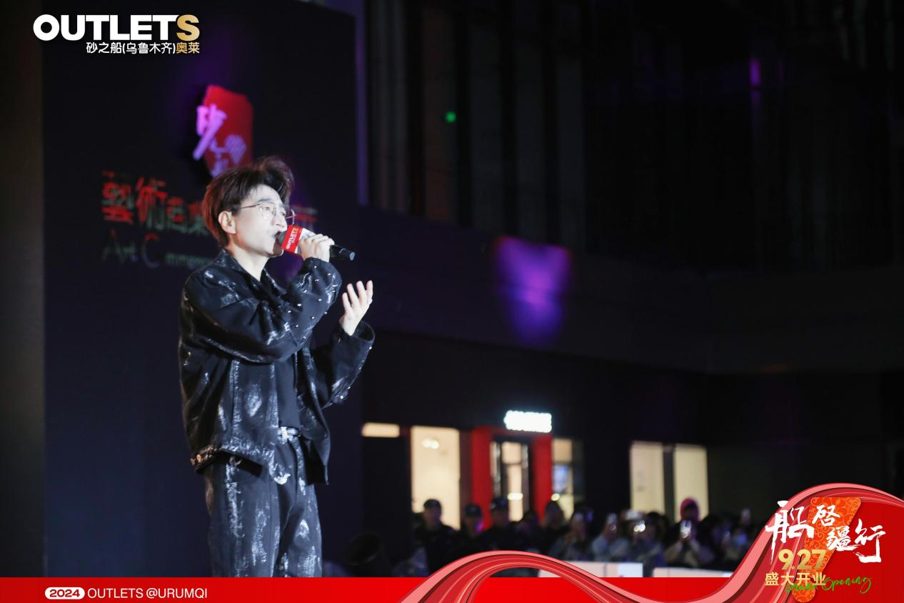 特邀明星嘉宾王铮亮的闪耀登场,将盛典氛围推向了新的高潮。他演唱了《半边山半边海》、《一起跳》、《时间都去哪了》及《不凡》这四首经典曲目,每一首都如同一颗璀璨的星辰,照亮了乌鲁木齐的夜空,也触动了现场每一位听众的心弦。演绎之余,王铮亮也表达了对砂之船的喜爱,并为砂之船(乌鲁木齐)奥莱的盛大开业送上了最美好的祝福。这份祝福,不仅是对商业繁荣的期许,更是对乌鲁木齐未来发展的美好祝愿。