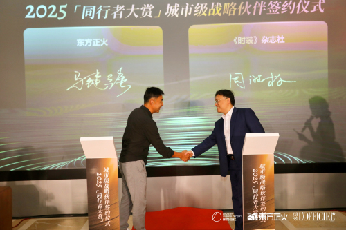 活动现场,还举办了东方正火与《时装》杂志社2025同行者之约城市级战略伙伴签约仪式,签约双方期待通过这次合作,能给广大市民游客带来不一样的时尚消费体验,以城市界面为思考,文化底蕴为引线,提炼出独属于新一线国际时尚之都成都的时尚文化,成为走向世界时尚的新篇章。