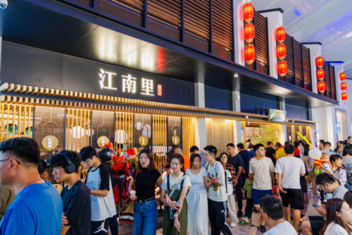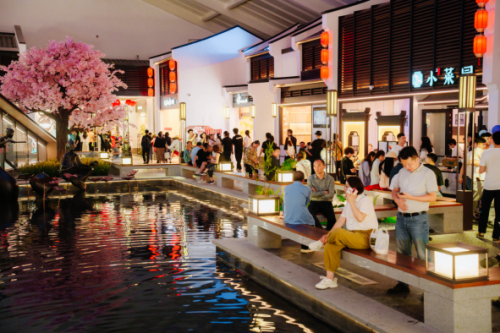 而在购物中心场外,中骏打造了一条“乐活里街区”,街区建筑是传统徽派建筑风格,结合独栋外摆商业模式,突破传统店铺框架,打造高情绪价值的社交空间。