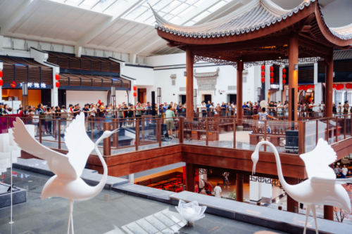中骏就这样把戏楼连带山水,一个完整的江南小镇,搬进了购物中心,他们要用这样的方式,展示花桥的属地文化。据悉,光是这条江南主题水街,中骏投入了超千万元。
