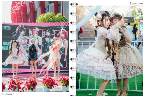 10月2-3日,推出“1912首届湖畔国潮动漫展”,以二次元文化以及其背后的圈层认同为基底,现场组织了第五人格水友赛 、洛丽塔下午茶会、宅舞大赛等,还打造了“次元空间”场拍区,活动现场数名Coser与观众“集邮”,二次元浓度显著超标。