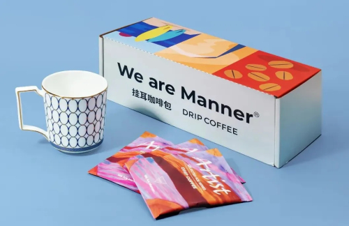 今年3月,Manner与英国奢华生活方式品牌WEDGWOOD官宣合作,推出了联名饮品「黑糖曲奇风味拿铁」,消费者可通过官方小程序用积分兑换或者购买挂耳咖啡套餐的形式来获得MANNER × WEDGWOOD 金粉年华系列联名马克杯套装。