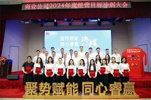 2024年10月15日上午,广东坚基商业运营管理有限公司(后简称“商业公司”)在集团六楼多功能厅组织召开“聚势赋能·同心睿赢·决战2024-商业公司2024年度经营目标冲刺大会”。