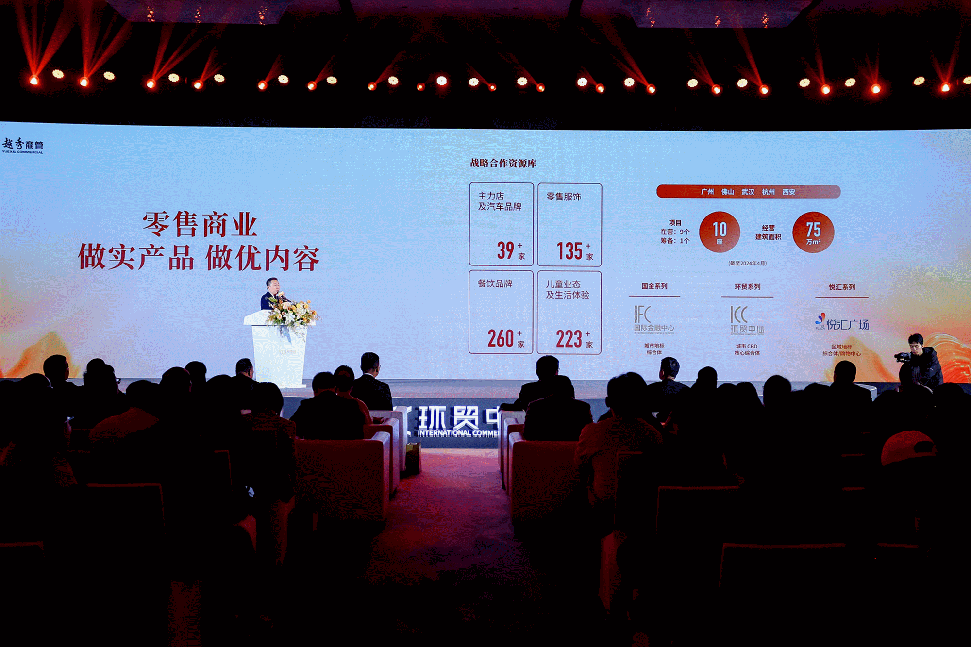 伴随着西安环贸中心项目宣传片的播放,在场的每一位嘉宾对项目有了更直观的了解。在项目推介环节,越秀商管党委书记陈晓东深度解读了项目优异的区位优势、深厚的客群基础,亮眼的空间及业态规划和坚定的发展愿景,让合作伙伴对西安环贸中心的商业潜力有了更深刻的认识。随后,PTW(澳洲)设计事务所执行董事、中国区总经理刘慧和万豪国际集团中国区酒店业务发展总监董德应,也先后登台为西安环贸中心项目的设计理念及配套的万豪酒店进行了详细的介绍,传递了项目国际化的打造理念和配置水准,为项目助力城市培育国际消费中心城市贡献更多活力。