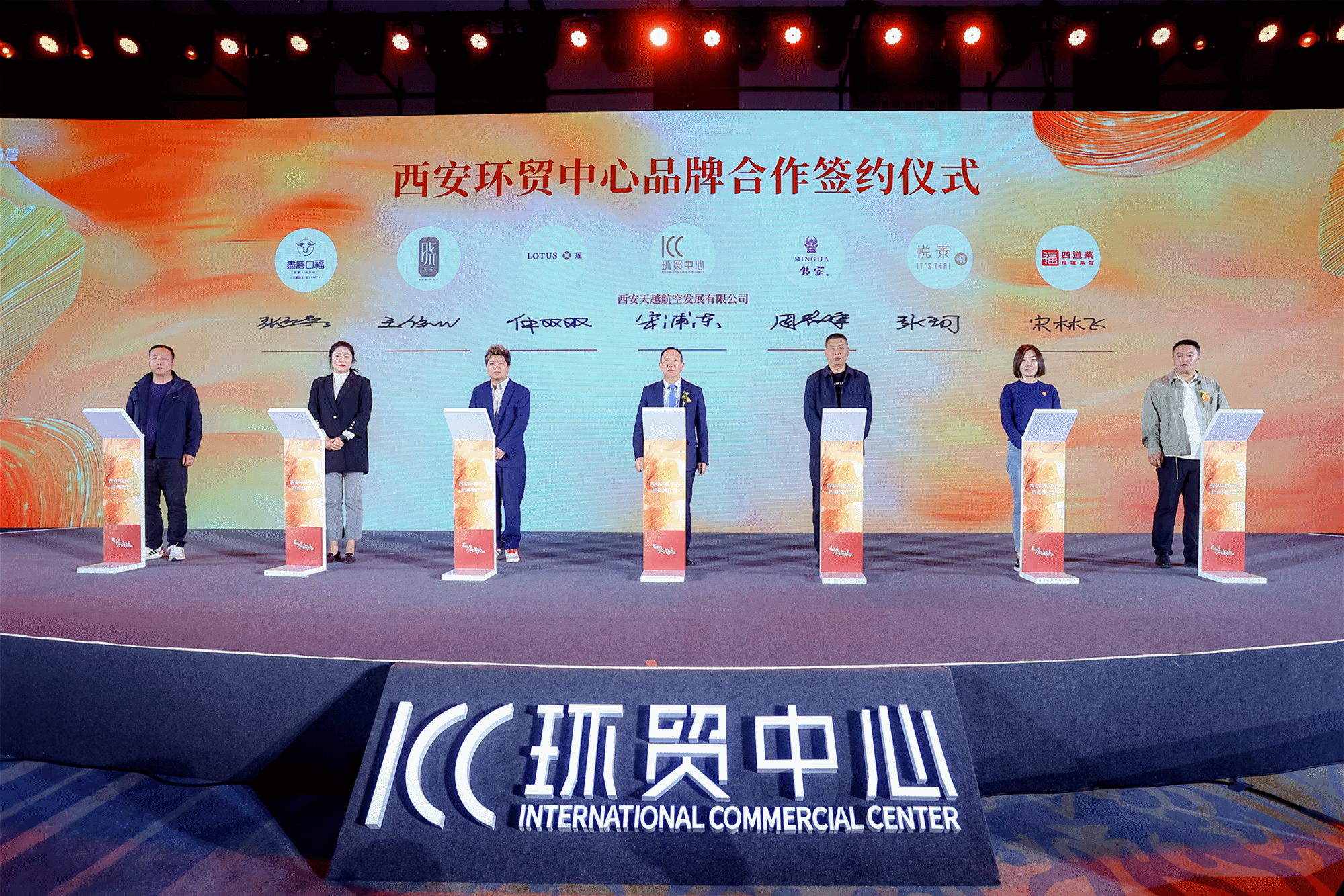 而在本次招商推介会的品牌签约仪式环节,西安环贸中心也首次释出了零售商业合作品牌矩阵。西安天越航空发展有限公司党支部书记董事长宋浦东代表西安环贸中心项目登台,黑珍珠上榜餐饮品牌铭家、莲西餐以及全国知名餐饮品牌晓长安、盡膳口福、悦泰、蟹町、四道菜等品牌代表共同参与了这一重要时刻。仪式结束后,业主方代表宋浦东表达了对项目未来发展的信心,他强调将坚持长期主义经营理念,并承诺为入驻品牌提供全面的支持与服务,实现与合作伙伴合作共赢。随后,陕西餐饮品牌代表晓长安总经理王阳发表了讲话,表达了对合作的期待和对西安环贸中心项目的信任。