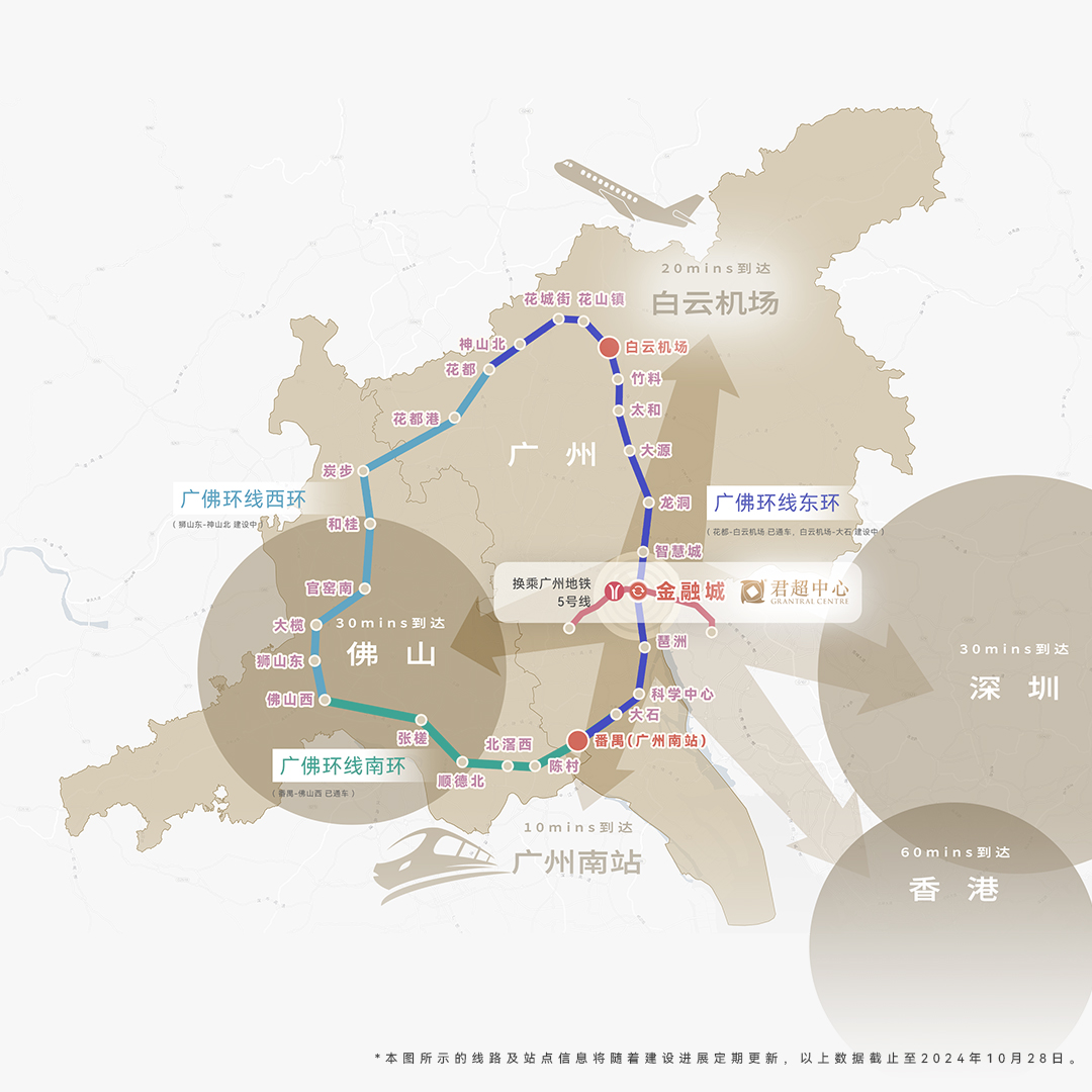 在立体交通网络的加持下,项目将实现10分钟通达广州南站,20分钟通达白云机场,形成大湾区一小时生活圈。