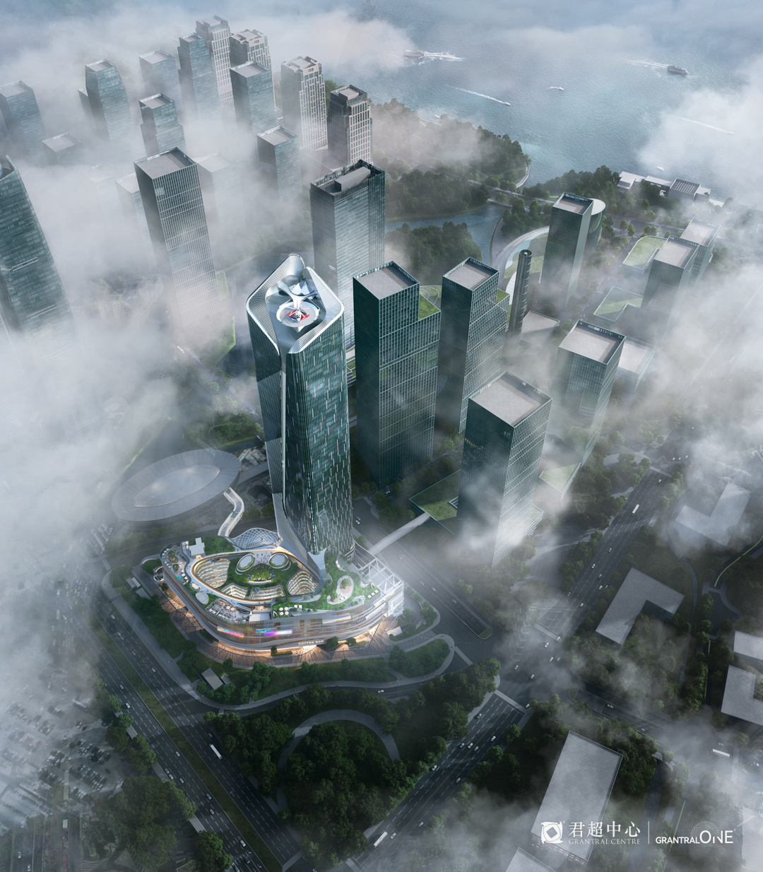 建筑设计作为项目的“魂 ”,是吸引消费者自发去探索的重要加分项,为了达到理想的设计效果,项目由全球知名设计公司BENOY(贝诺)的顶级团队勾勒“游龙盘珠”建筑造型;并由国内知名设计单位SCAD华南理工大学建筑设计研究院在此基础上融合金融、商业属性与开发理念,对项目整体外立面进行优化提升,打造优于同业的办公与商业空间,在塔楼的至高点,约700㎡的直升机停机坪,已然奠定了项目的高端光环。