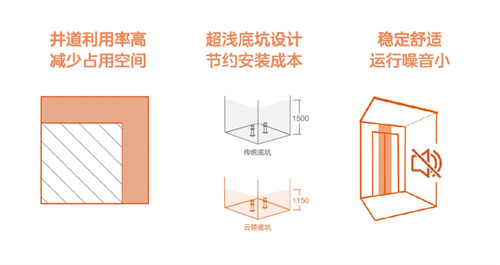 云领有机房乘客电梯采用紧凑密集型曳引机和特殊设计控制柜
