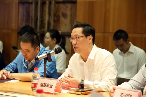 会上,坚基商业公司总经理黄勇夫介绍河源市商业中心消防安全标准化管理工作的相关经验,河源市商业中心始终将安全工作放在首位,致力于为广大市民提供安全、舒适的购物环境。