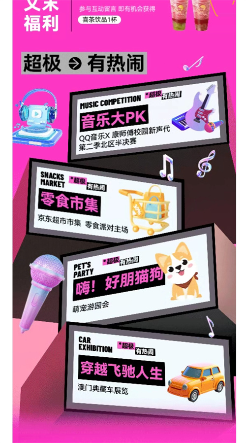 超极合生汇音乐巅峰对决、京东零食市集、萌宠游园会…
