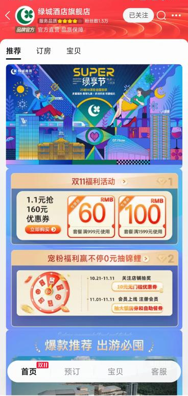 值此双11之际,绿城商用举办“超级绿享节”主题活动。首次打通商业会员、酒店用户、公寓租客权益壁垒,核心业务板块出圈联动,为目标客群带来丰富的福利与全新的体验,亦增加用户粘性、盘活用户活跃度。