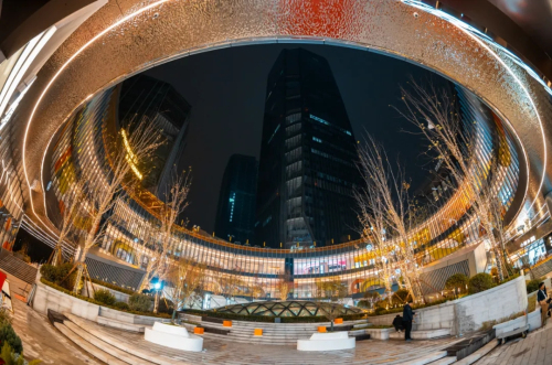 事实上,作为世茂商娱的轻资产新秀,并且是济南市场较为稀缺的非标商业,中购联此前对其空间特色亮点有过多次报道。不同于传统盒子mall,济高·世茂芯环中心在周边写字楼围合下形成了特殊的圆环结构,该圆环不仅串联起周边几座商务建筑,在高差之下形成了多首层布局,更通过圆环的“镂空”形成了可以漫步观天的圆形开放式广场。