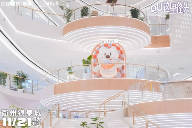 作为立足衢州、辐射浙西的首个银泰城,衢州银泰城地处衢州东区衢江商圈核心区,13万方体量下,规划了地下二层、地上五层,涵盖餐饮零售、潮牌服饰、亲子娱乐、休闲体验等多元化业态。同时还拥有衢州首个城市书苑会客空间、首个音乐岛下沉广场、首个双首层LG步行街、首个超1000方透明穹顶等多个全市首创场景。项目开业后将进一步完善衢江城市商圈功能配套,加快城市能级提升,赋能城市繁荣发展。