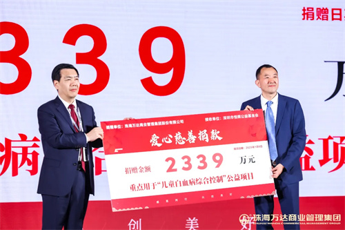 去年11月,珠海万达商管集团与恒晖公益基金会签署战略合作协议,双方将在儿童大病救助、青少年教育关怀等公益慈善领域展开全面合作。本次慈善捐赠将重点聚焦恒晖公益基金会在甘肃省开展的“联爱工程——儿童白血病综合控制”公益项目。