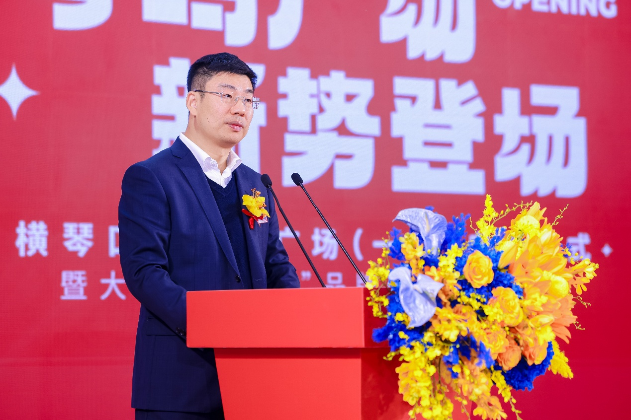 典礼上,大横琴集团吕海涛先生在致辞中对琴鸣广场的正式启业致以热烈祝贺,阐述了大横琴集团坚守初心,在把握“稳根基、谋新篇”的总体思路下,全力打造合作区商业新空间,为促进澳门经济适度多元发展创造新平台,彰显其发挥自身优势、服务合作区发展的坚定决心。大横琴口岸公司郑进博先生介绍了公司未来的商业布局和战略规划,“琴鸣”系列品牌策略的正式发布,标志着大横琴商业向“高品质商业构建者”这一目标迈出重要一步。“鸣”字有发出声响、引起共鸣之意。“琴鸣”意味着商场希望能够引起共鸣,通过优质的服务和丰富的商品吸引顾客的关注和喜爱。同时,“鸣”字传递出“鼓乐齐鸣”的庆祝意味,寄托着对琴澳两地共融共生、合作发展的美好祝福,愿琴澳和鸣,共谱发展新篇。