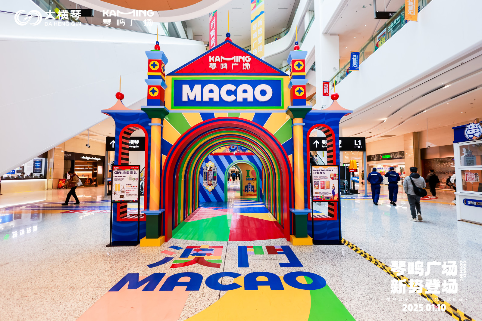 来自合作区政府、大横琴集团、大横琴口岸及入驻商户的代表们共同登台,举行了隆重的剪彩仪式,为琴鸣广场的繁荣发展拉开了序幕。未来,琴鸣广场作为口岸商业的新地标,将为世界各地的宾客、尤其是琴澳居民带来全新的通关体验以及消费生活场景。