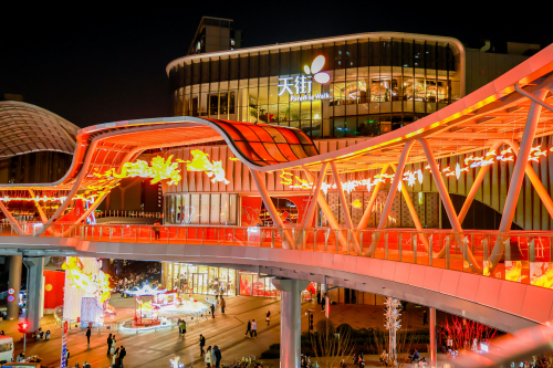 在重庆,重庆礼嘉天街加码新春非遗氛围,结合湖滨公园礼嘉灯会场景,定制百米故宫【红墙雪韵】限定场景,限时飘雪氛围,以及业主专属全家福拍摄活动。重庆公园天街结合春节档期,抓住节日情绪,打造冰雪秘境主题氛围,日均客流同比增长64%,营业额同比增长52%。重庆金沙天街引入重庆最大户外真冰场,结合天街庙会主题,紧贴节日情绪打造新春购物节,日均客流同比增长25%,营业额同比增长20%。