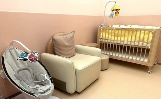 武汉万象城母婴中心里,小床、电动安抚摇篮被搬入房间