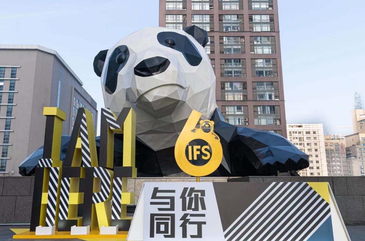 成都IFS上的爬墙大熊猫标志性打卡点记忆营造
