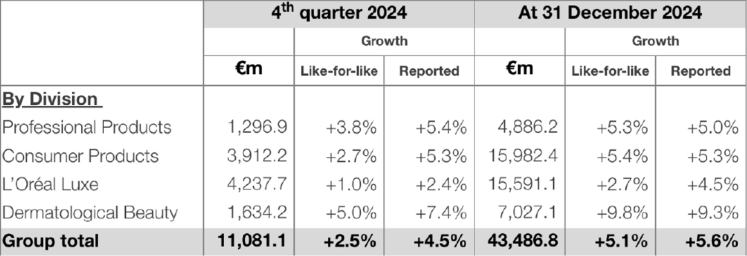 2月7日凌晨,欧莱雅集团对外公布了2024年全年及第四季度业绩情况。财报显示,欧莱雅集团2024年业绩再创新高,销售额达到434.8亿欧元(约合人民币3291.9亿元),同比增长5.6%。