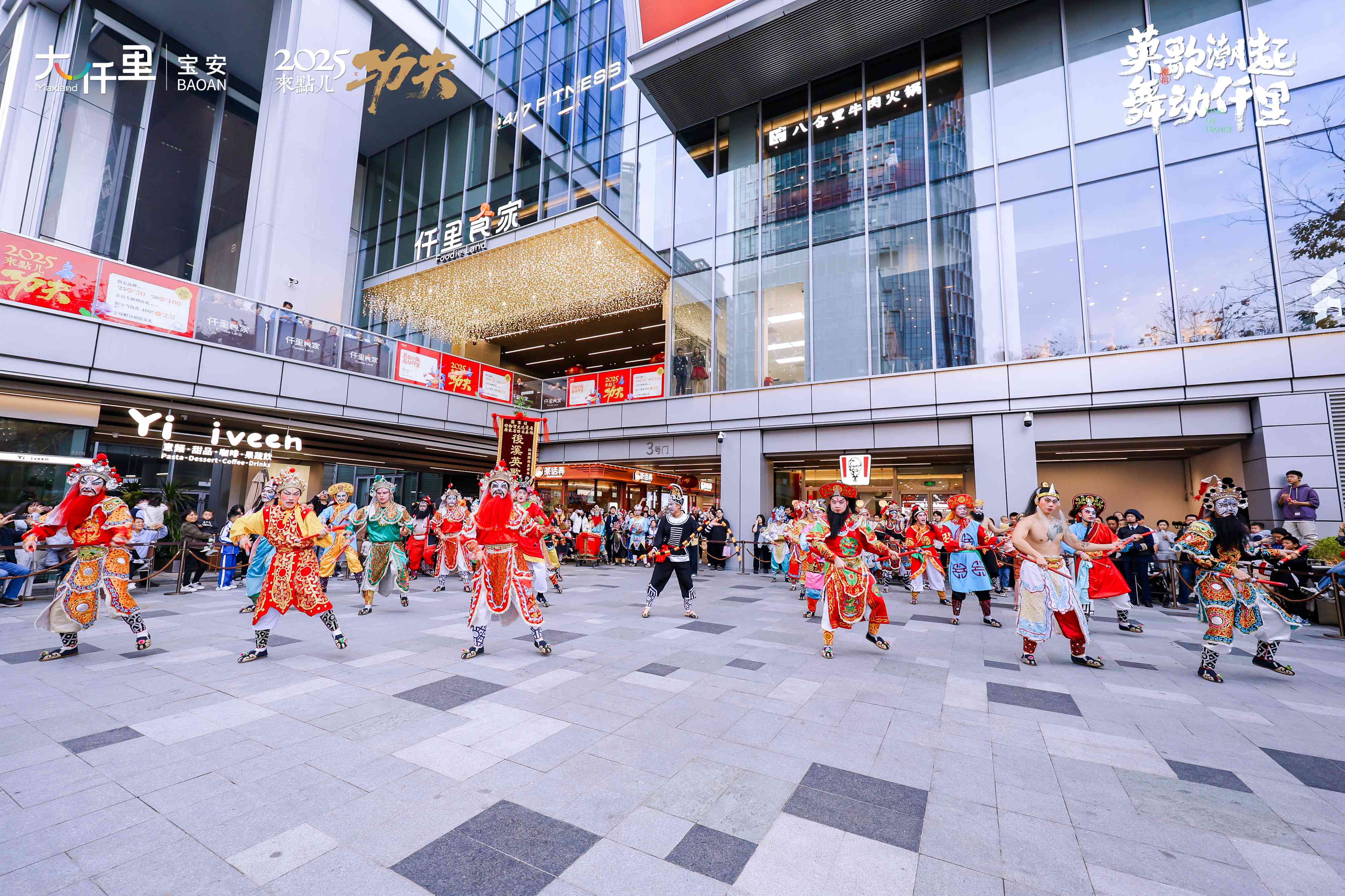 继2023年南山英歌队深圳首秀全网爆火,2024年深圳首个英歌舞文化主题展广受好评、宏发商业仟里英歌首次联动,再到2025年元宵霸榜回归,传承中华非遗文化,仟里一直在行动。今年作为宏发商业仟里英歌联动的第二年,省内唯三之二国家级非遗英歌队齐齐再现,与仟里顾客共燃元宵!仟里食家亦为潮阳后溪英歌队,给新安市民带来了一场家门口、荡气淋漓的英歌首秀表演;光明大仟里则重磅邀请另一支国家级非遗英歌队伍——“普宁南山英歌队”前来助阵。这是他们继登蛇年央视春晚后在深的首次亮相,亦是光明首秀,丝滑蛇步的萌蛇“小时迁”更是圈粉无数。