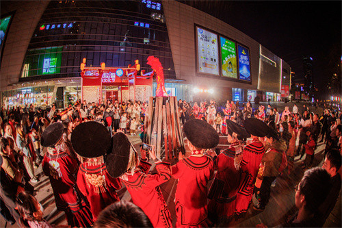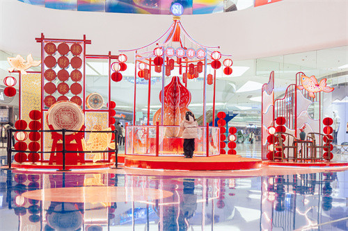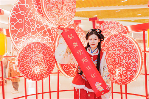 SM成都则融入彝族风情,打造“东方腔调·民族文化节”四大场景:外广场以彝族刺绣及拱斗结构为创作灵感,创意呈现【孜莫格尼·吉祥如意】;2号门【日“富”“彝”日】和5号门的【年“富”“彝”年】,吸取彝族建筑风格和搭建工艺,巧妙嵌入彝族木椅、黄油伞、刺绣地毯等特色单品,展现彝族独特文化魅力!2楼中庭的【好运“彝”年】,则以彝族传统纹样,搭配中国红灯笼落地,为超10万市民送上浓郁的彝族风情新春。